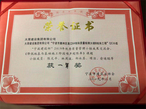經(jīng)過專家前期評審,選出其中較有代表性的43個課題作為發(fā)表課題,其余47個為交流課題。其中,我公司共有三個課題參加,一個發(fā)表,兩個交流。經(jīng)過層層選拔,公司“寧波市鄞州區(qū)嵩江6#地塊質(zhì)量檢測大樓B地塊”QC小組發(fā)表的《降低地基與基礎施工階段噪聲超限率》課題榮獲發(fā)表會QC成果一等獎;“鄞州區(qū)長豐幼兒園工程”QC小組的《提高構(gòu)造柱施工一次合格率》課題榮獲優(yōu)秀獎;“鄞州區(qū)長豐鄰里中心工程”QC小組的《提高現(xiàn)澆混凝土柱根部施工一次合格率》課題榮獲優(yōu)秀獎。