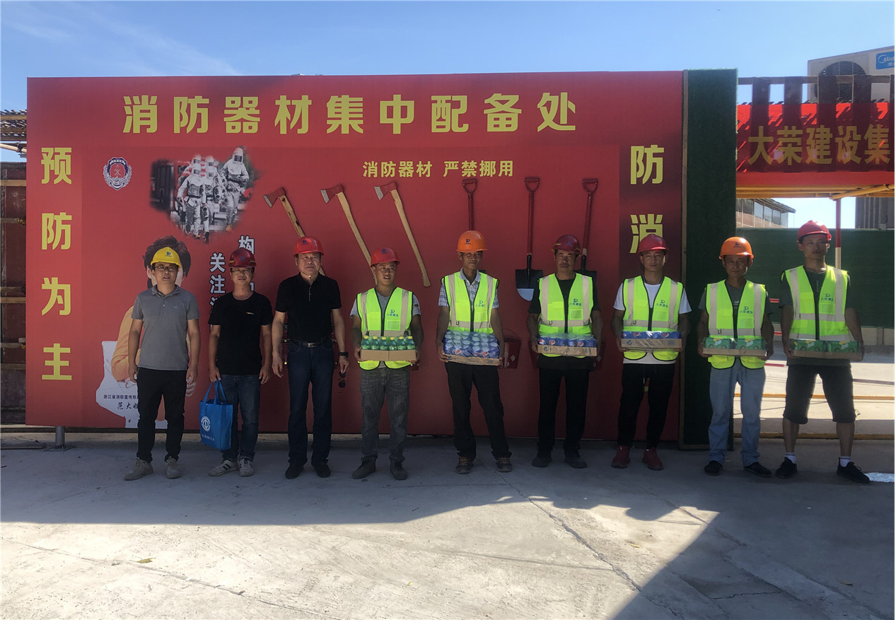 連日來,氣溫持續(xù)升高,蒸籠模式持續(xù)。驕陽炙烤下,仍有這么一群大榮建設人經(jīng)受著高溫的“烤”驗,他們揮汗如雨,堅守在崗位上。為保障一線工人們的身體健康,日前,集團公司積極開展“關愛一線,夏送清涼”的一線慰問活動,生產(chǎn)部副總經(jīng)理、總工程師等一行人先后到鄞州人民醫(yī)院東院區(qū)建設項目、城中村改造慶豐地塊整體置換項目、北侖大碶中河路東、云臺山路南安置房項目等在建項目部為一線工人送去了礦泉水、飲料以及藿香正氣、克痢痧等防暑降溫用品。同時,對各項目部安全生產(chǎn)、防暑降溫、勞動保護、環(huán)境衛(wèi)生等進行督查。要求各項目部和施工單位完善應急預案,認真做好高溫作業(yè)安全指導等相關工作,確保公司項目施工安全有序,進度計劃順利完成。