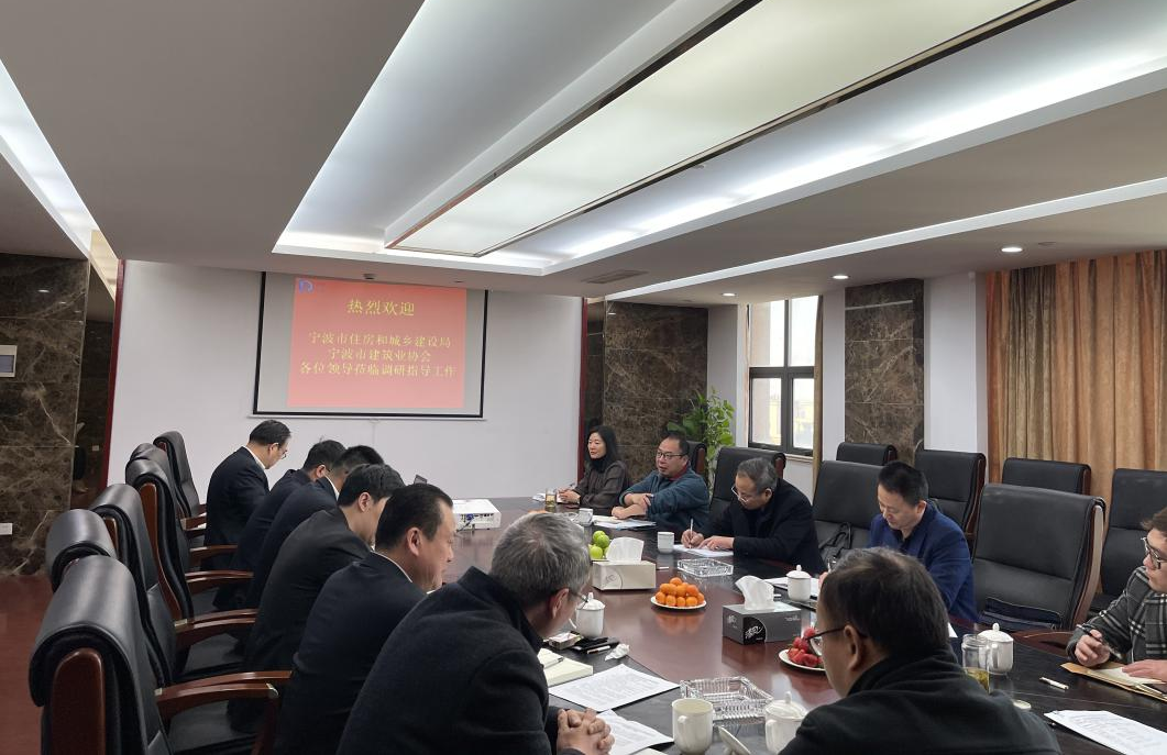 2021年3月23日,寧波市住建局市場處王大成副處長一行五人蒞臨公司調(diào)研建筑行業(yè)經(jīng)濟(jì)運(yùn)行情況工作,與公司總經(jīng)理徐曉磊、各部門副總座談,了解企業(yè)經(jīng)營現(xiàn)狀與發(fā)展思路,面臨的重點(diǎn)問題與困難,并聽取企業(yè)建議。會談氣氛熱烈,交流積極,并就建筑行業(yè)發(fā)展所遇到的普遍性問題進(jìn)行探討。