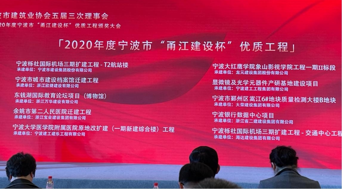 近日,寧波市住建局發(fā)文公布了2020年度寧波市“甬江建設(shè)杯”優(yōu)質(zhì)工程獎(jiǎng)評(píng)選結(jié)果,我公司承建的寧波市鄞州區(qū)嵩江6#地塊質(zhì)量檢測(cè)大樓B地塊項(xiàng)目榮獲“甬江建設(shè)杯”優(yōu)質(zhì)工程獎(jiǎng)。