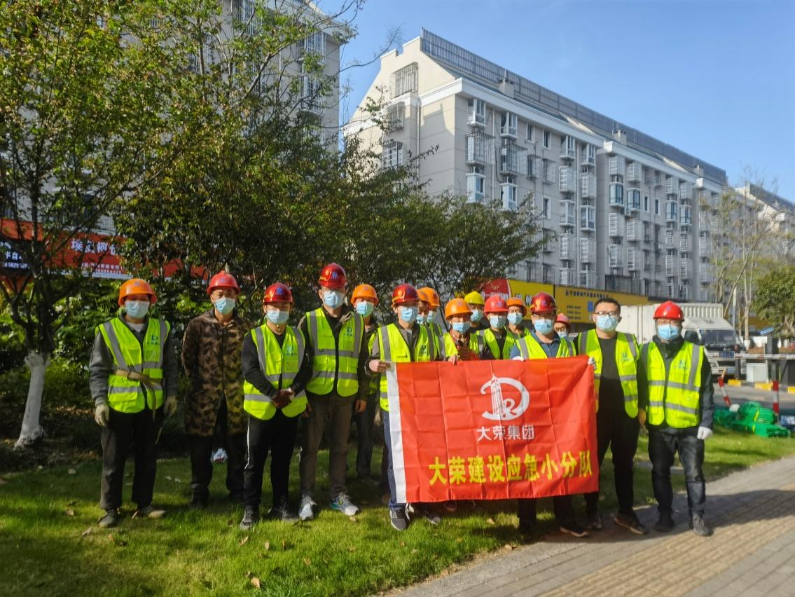 在搭建現(xiàn)場,大榮建設應急小分隊沒有豪言壯語,只有忙碌的身影,每位隊員都在爭分奪秒的搶建圍擋,全力以赴