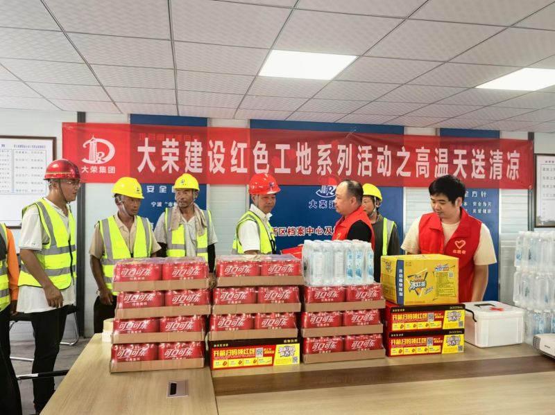 入夏以來(lái),氣溫持續(xù)攀升,酷暑考驗(yàn)著堅(jiān)守在施工一線(xiàn)的建設(shè)者,更牽動(dòng)著大榮集團(tuán)公司領(lǐng)導(dǎo)的心。近期,集團(tuán)黨支部、工會(huì)、生產(chǎn)部門(mén)聯(lián)合開(kāi)展了為期2個(gè)月“高溫送清涼、關(guān)愛(ài)入一線(xiàn)”的慰問(wèn)活動(dòng),為工友們發(fā)放藿香正氣水、風(fēng)油精、西瓜、礦泉水等防暑降溫必備物品,并叮囑項(xiàng)目部要合理安排高溫天氣工作時(shí)間,做好防暑降溫工作。