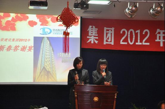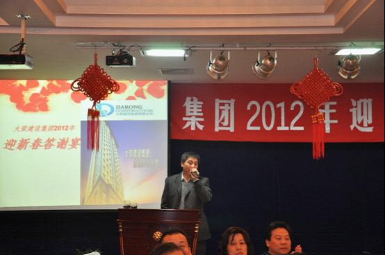大榮建設(shè)集團(tuán)2012年迎新春答謝宴會于1月19日在寧波市鄞州區(qū)銀苑大酒店隆重舉辦。集團(tuán)公司全體管理人員及家屬參加了宴會,同時參加答謝宴會的還有繁榮置業(yè)、檢測、混凝土等子公司管理人員和家屬。