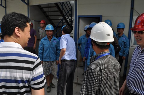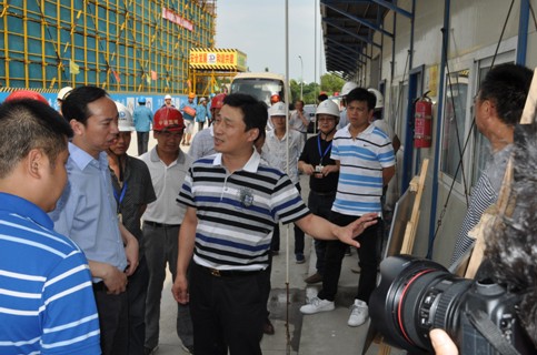 2012年7月10日下午,鄞州區(qū)區(qū)長(zhǎng)陳國軍等一行冒著高溫酷暑,帶著慰問品來到我公司承建的鄞州區(qū)科技信息園工地進(jìn)行慰問,向在高溫季節(jié)還奮戰(zhàn)在一線的施工人員送上清涼飲料及避暑用品,并囑咐工人要合理安排好高溫作息時(shí)間,注意生產(chǎn)安全。區(qū)長(zhǎng)還聽取了工程建設(shè)情況。 |
