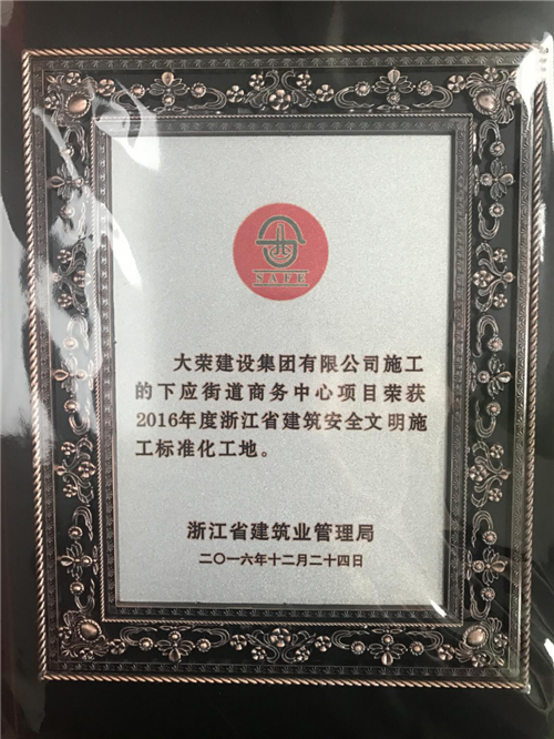 恭賀我公司施工的下應街道商務中心項目榮獲2016年度浙江省建筑安全文明施工標準化工地。