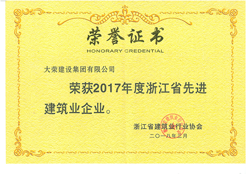 日前,從浙江省建筑業(yè)行業(yè)協(xié)會網(wǎng)站獲悉,大榮建設(shè)集團有限公司榮獲“2017年度浙江省先進建筑業(yè)企業(yè)”。